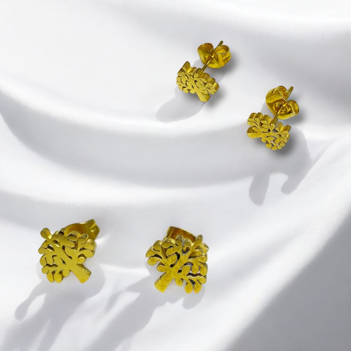 Aretes Árbol de la Vida Dorados – Acero Inoxidable | Luna Bella Joyería