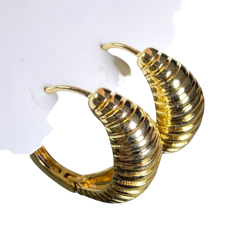 Aretes Aros de Acero Inoxidable Dorados con Diseño Texturizado | Luna Bella Joyería