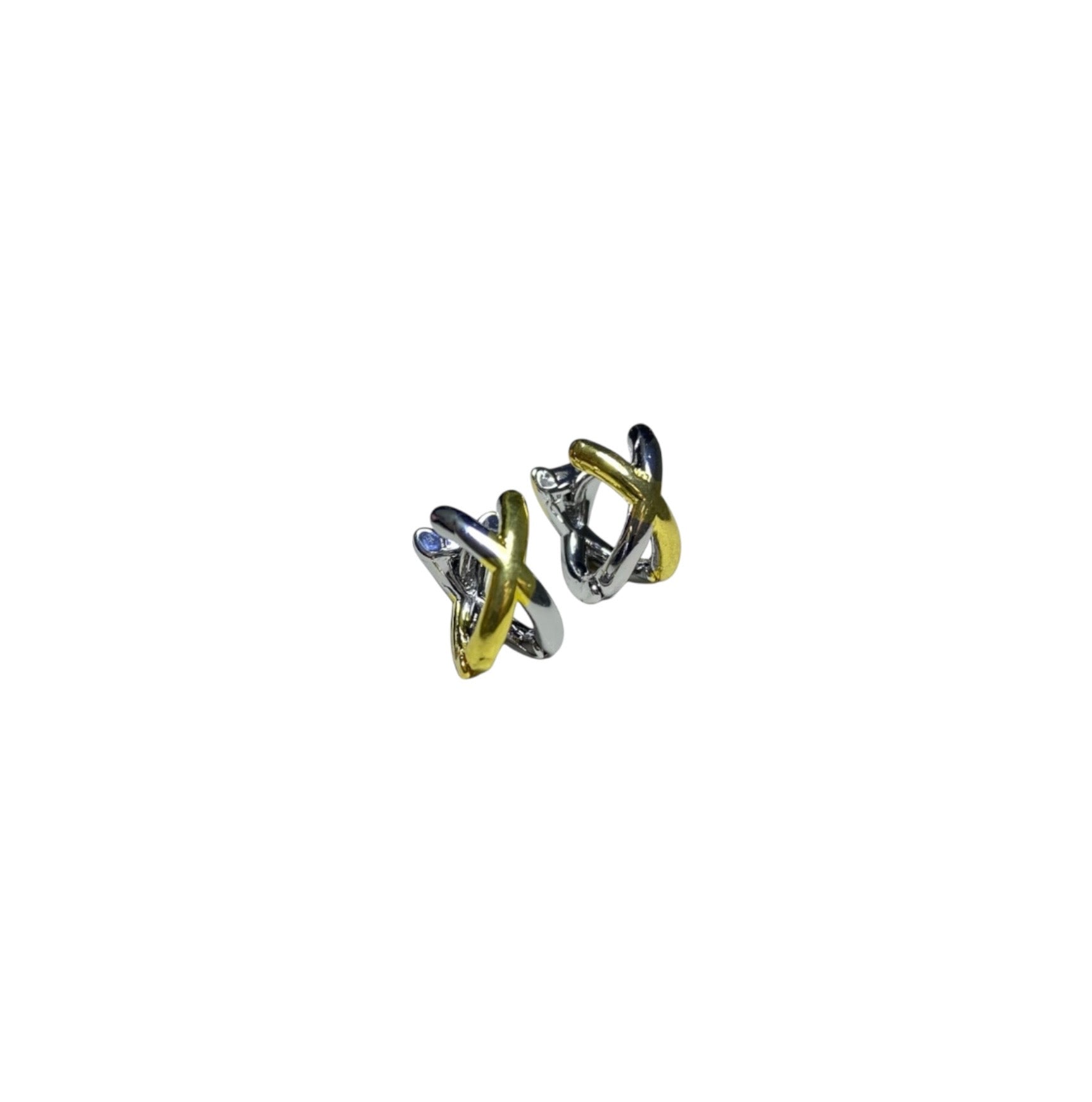 Aretes Bicolor con Diseño en X | Luna Bella Joyería