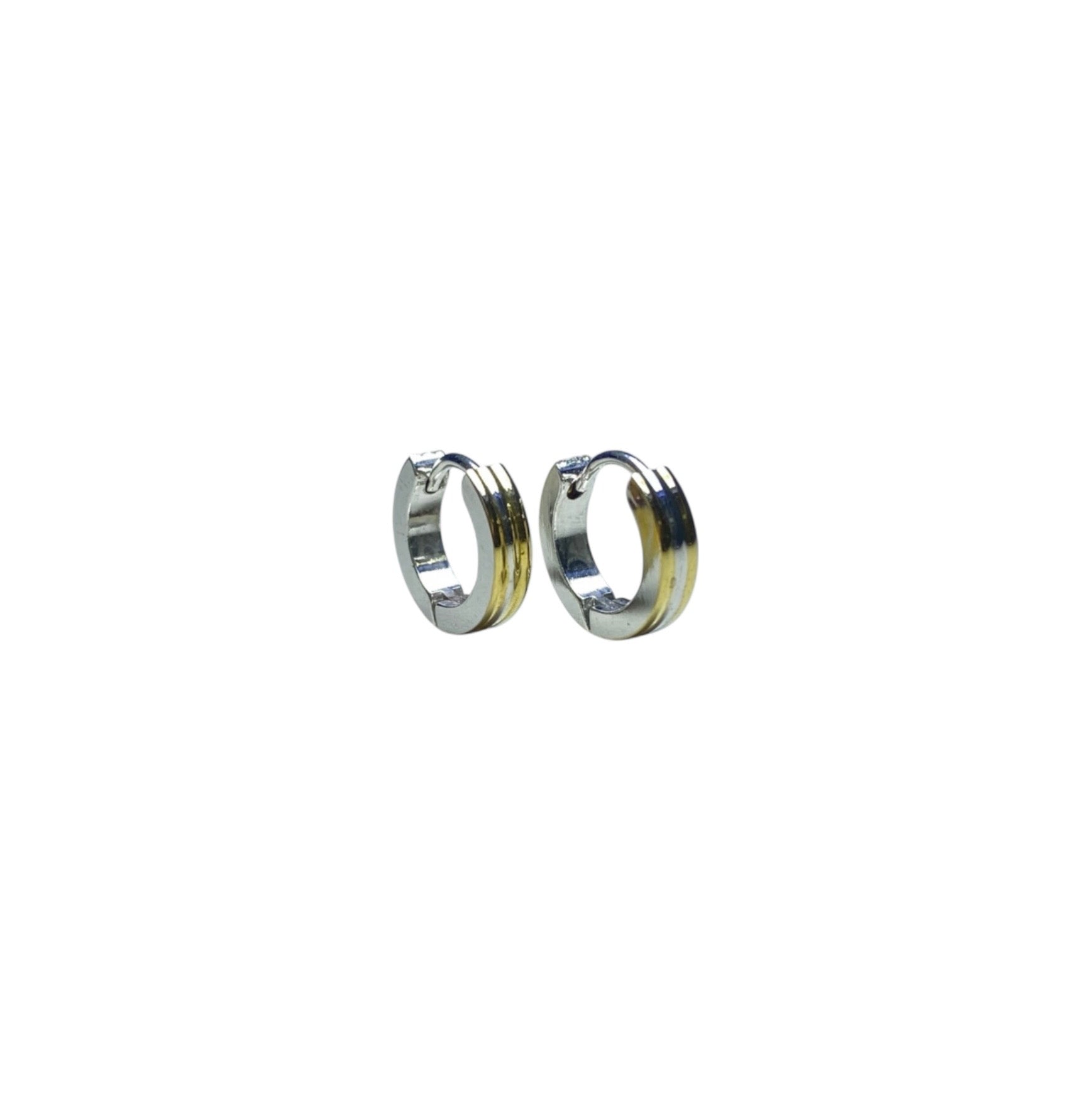 Aretes Bicolor Huggie con Franja Dorada Central | Luna Bella Joyería