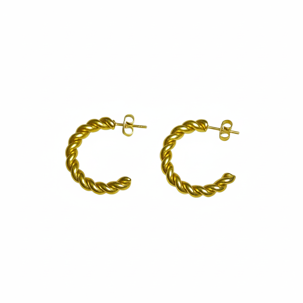 Aretes Dorados Hoop Trenzados Acero Inoxidable | Luna Bella