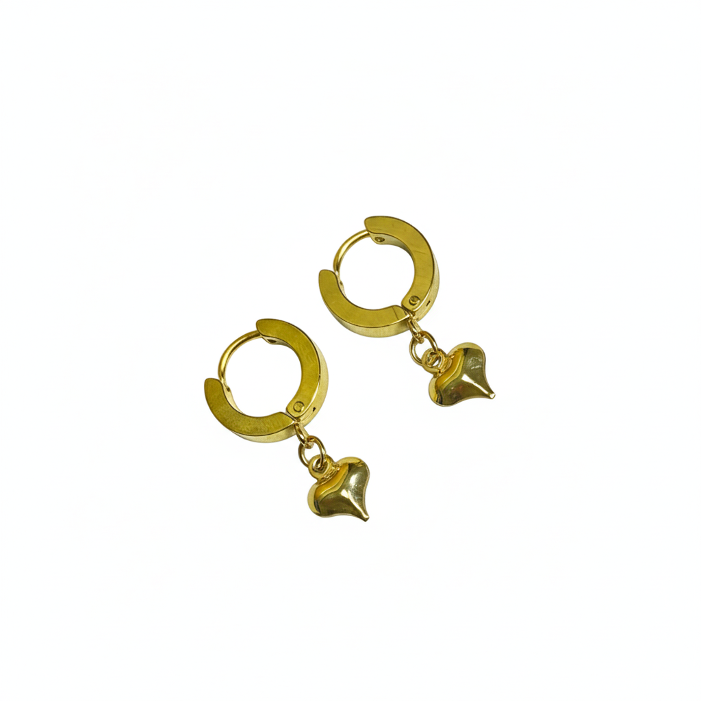 Aretes Dorados Hoop con Dije de Corazón Acero Inoxidable | Luna Bella Joyería