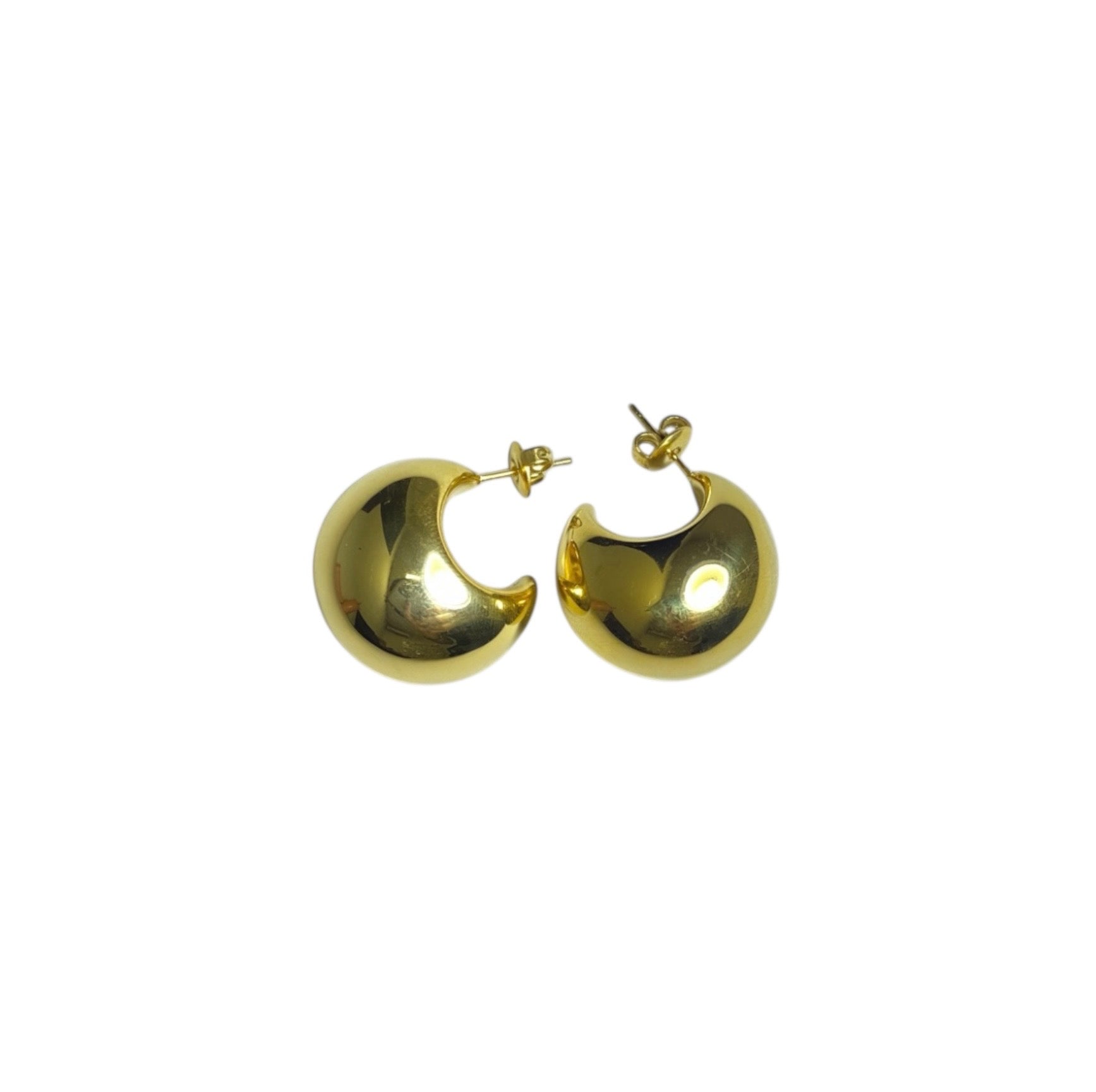 Ilumina tu estilo con los Aretes Dorados en Forma de Media Luna de Luna Bella, un diseño moderno y pulido que aporta volumen, brillo y un toque celestial a cualquier outfit. Su forma de media luna crea un efecto elegante y llamativo, perfecto para quienes aman los accesorios con personalidad. Fabricados en acero inoxidable hipoalergénico, estos aretes mantienen su color dorado intenso, no se oxidan y son ideales para uso diario sin preocupaciones.
