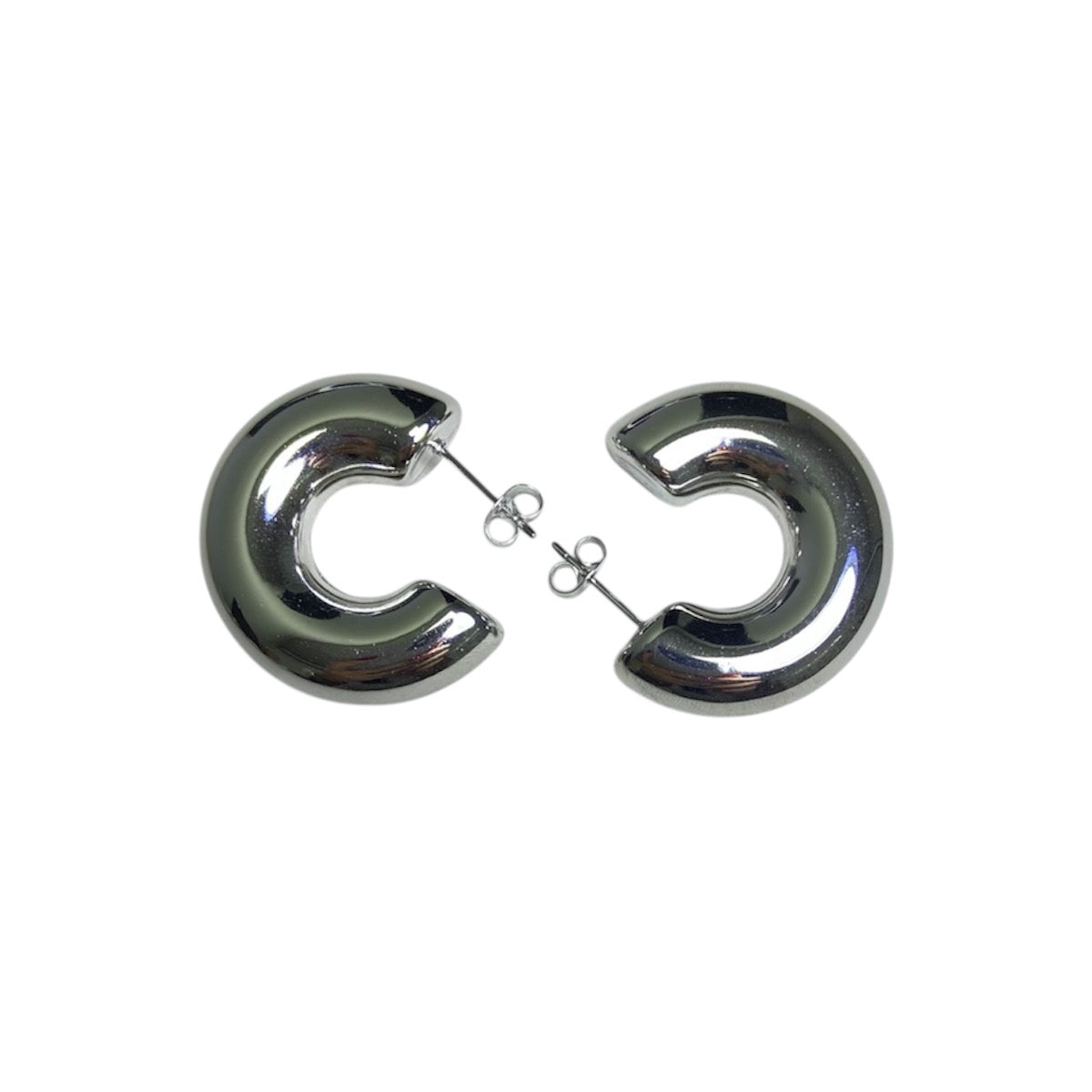 Aretes Plateados Tipo C Gruesos Modernos | Luna Bella Joyería