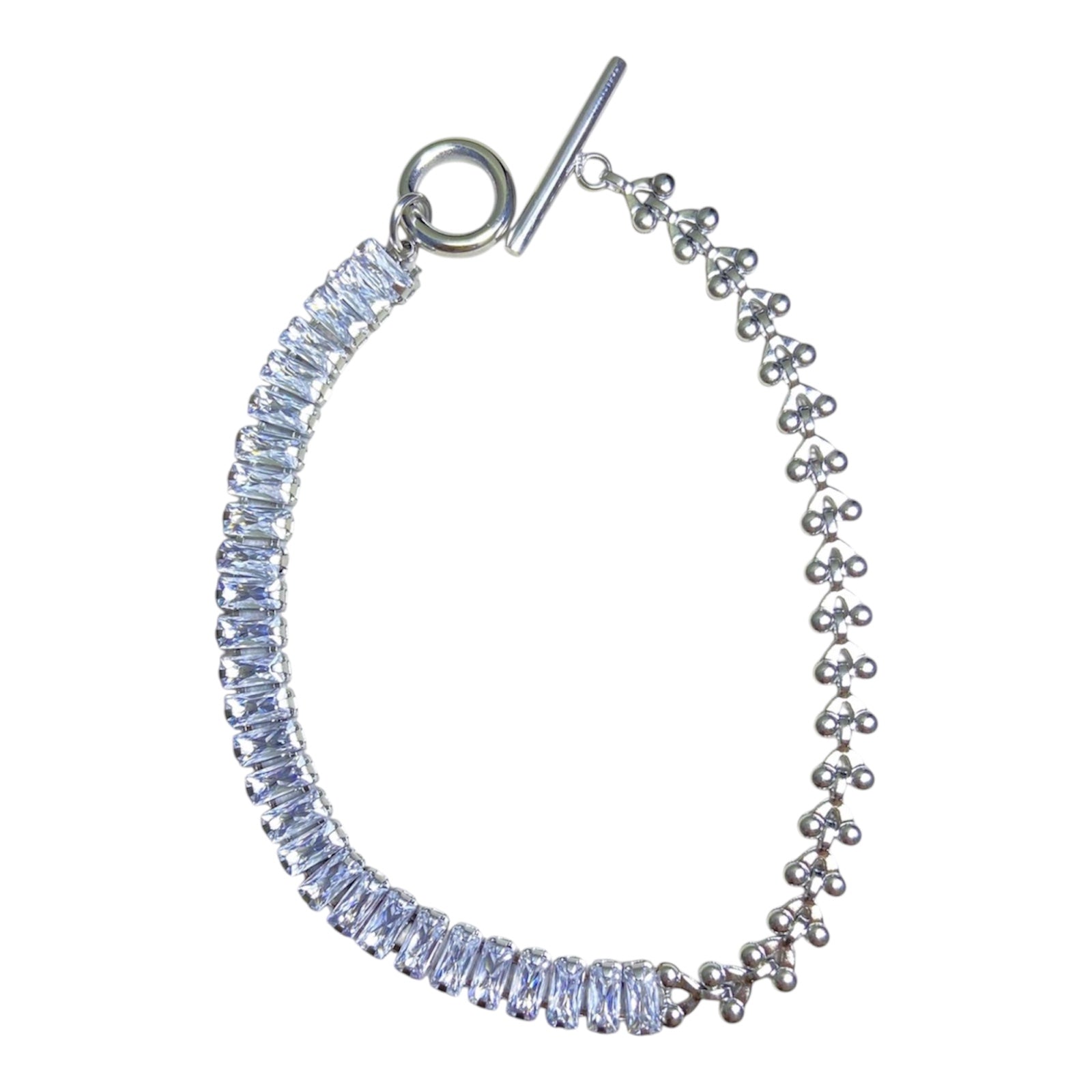 Pulsera Plateada con Zirconias Baguette y Cierre en Barra | Luna Bella Joyería