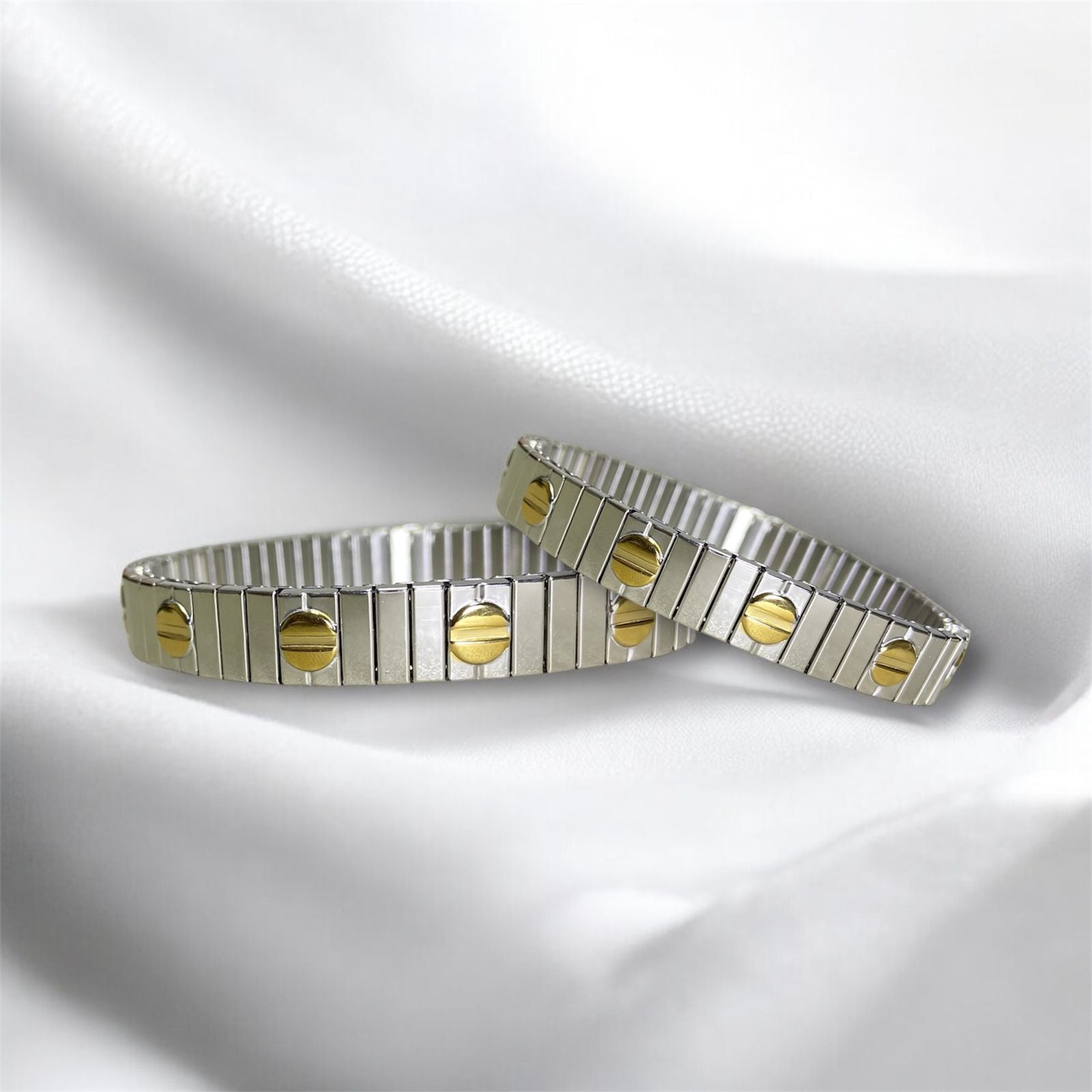 Encuentra desde pulseras delicadas y minimalistas hasta modelos con incrustaciones, dijes y acabados bicolor, pensadas para resaltar tu estilo personal. Son piezas versátiles que puedes usar solas para un toque sutil o combinar entre sí para un look más moderno y llamativo.