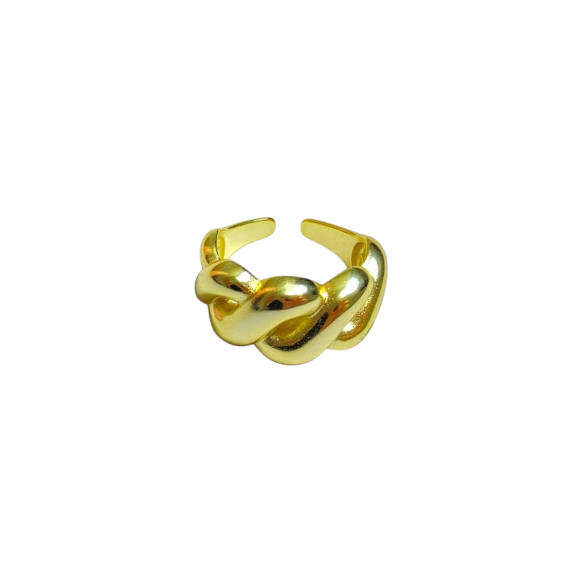 Eleva tu estilo con este anillo ajustable dorado de acero inoxidable con diseño trenzado de Luna Bella Joyería. Su estructura de volumen suave y acabado pulido crea un efecto elegante y moderno que destaca por su presencia sin perder sofisticación.