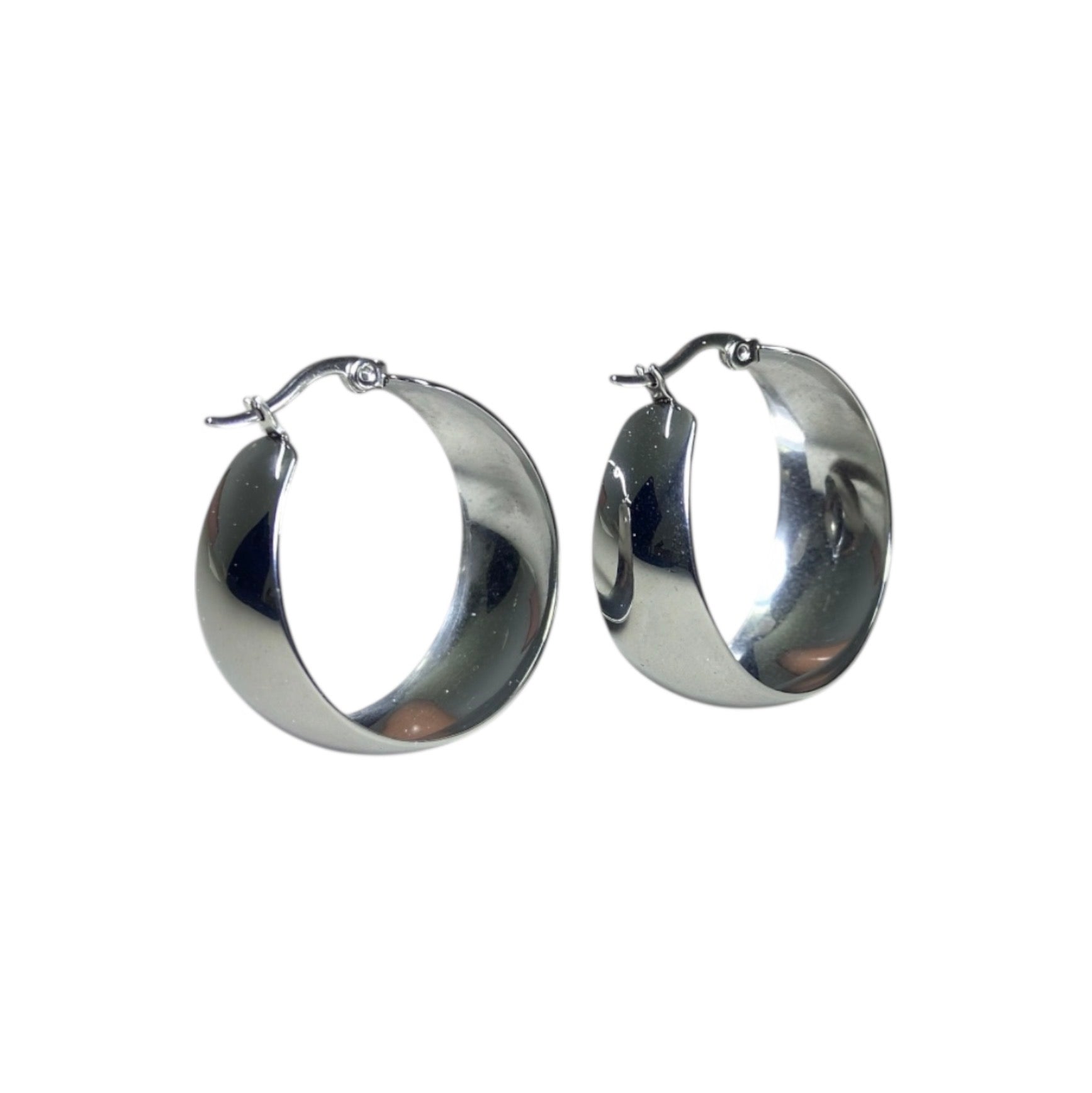 Aretes Aro Ancho Pulido en Oro y Plata | Luna Bella Joyería