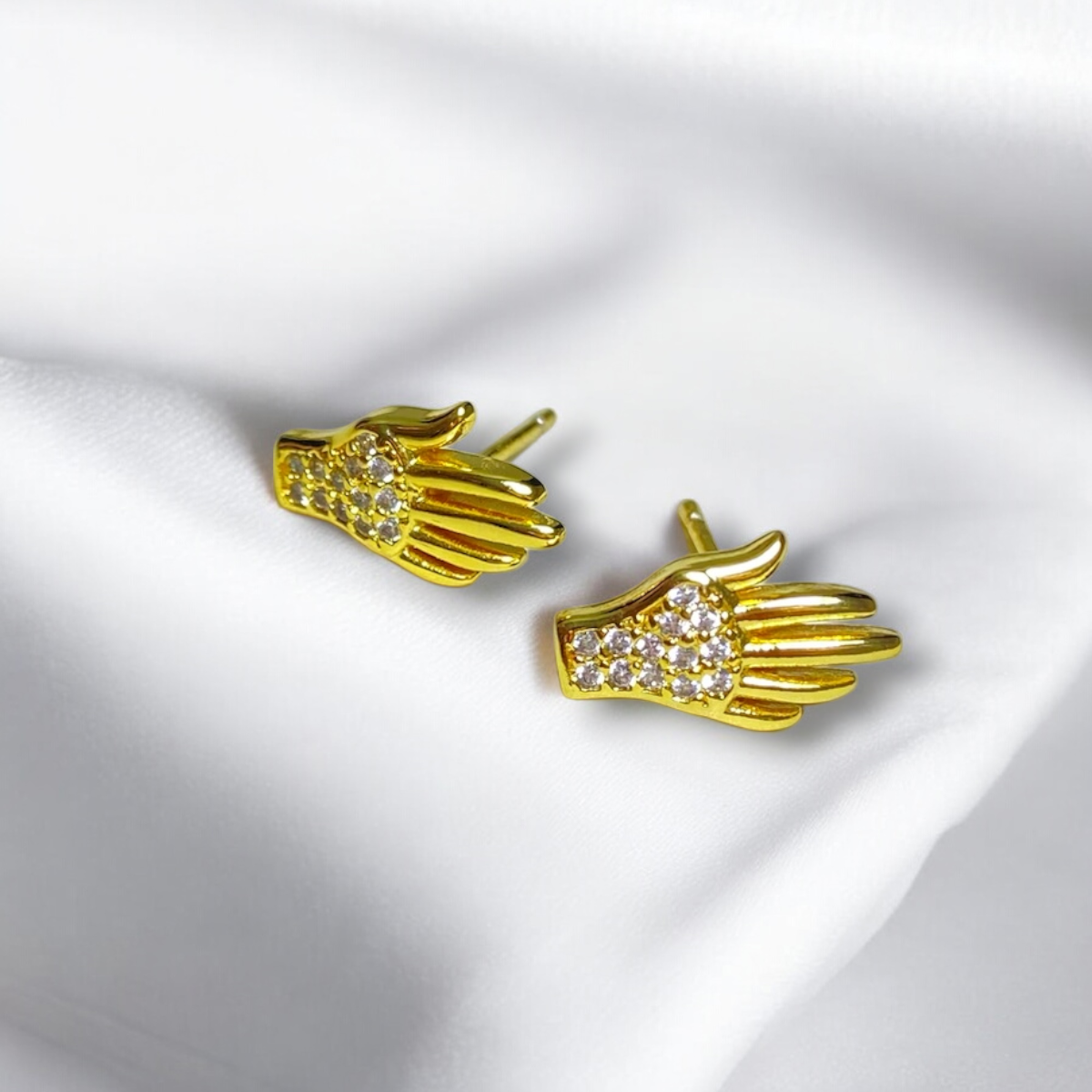 Aretes de Acero Inoxidable Dorados en Forma de Mano con Zirconias | Luna Bella Joyería