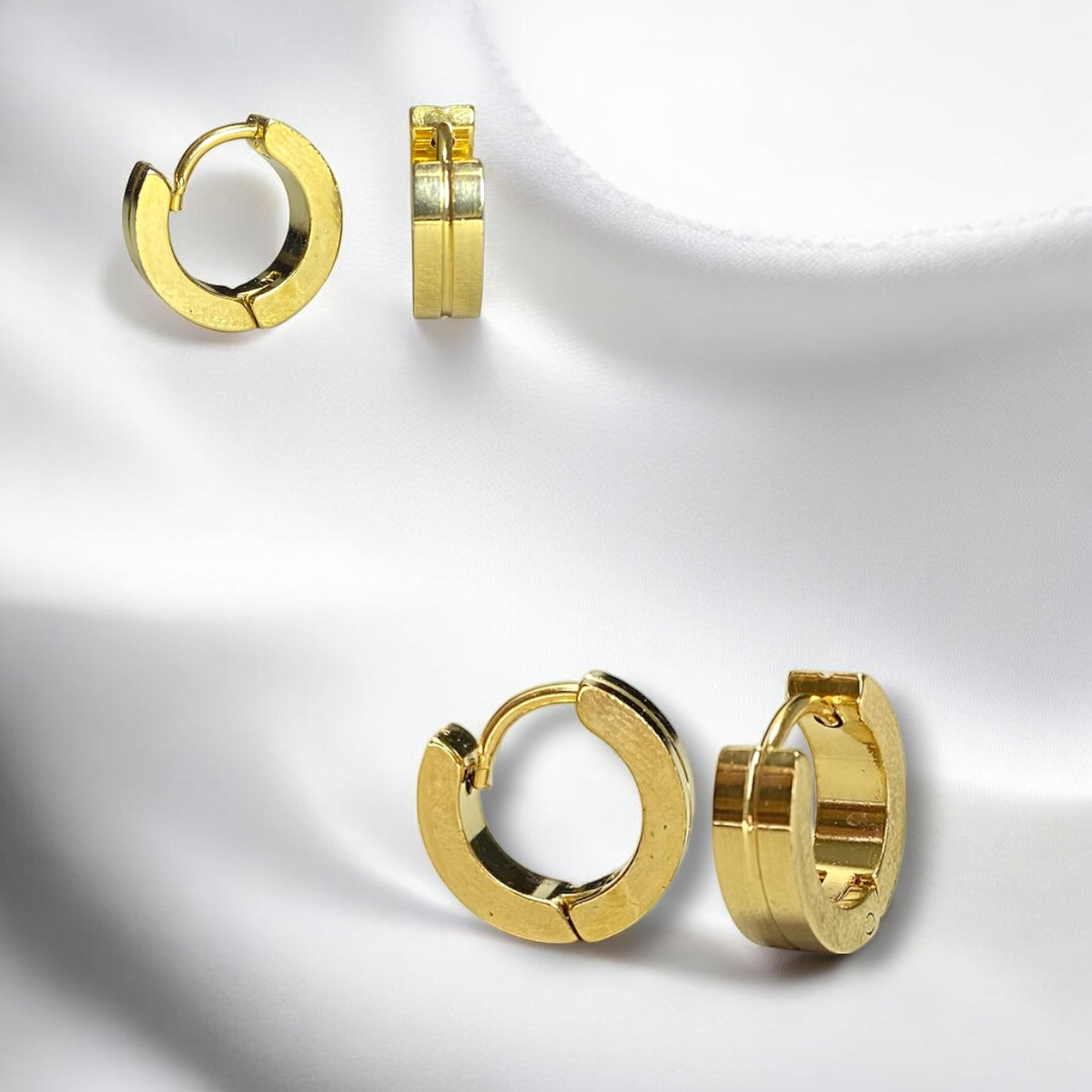 Aretes Dorados Huggie Anchos – Aros Lisos Con Zanja Central | Luna Bella Joyería