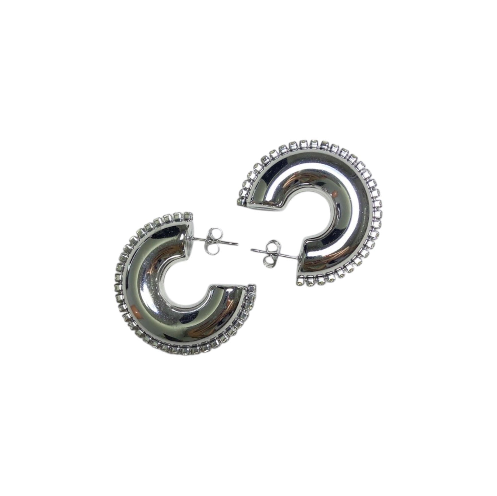 Aretes Plateados Tipo C Con Zirconias En Borde | Luna Bella Joyería
